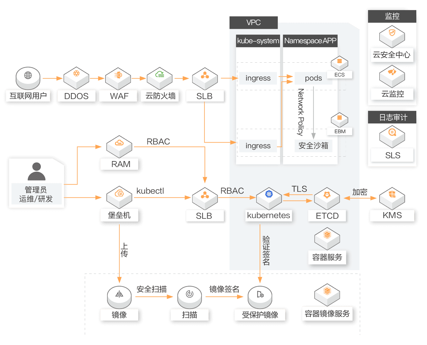基于阿里云容器安全ATT&CK攻防矩阵,云安全中心重点关注容器构建、容器部署和容器运行三大生命周期阶段,通过云原生方式,多维立体构建容器安全能力,为企业云上容器化进程提供全方位安全保障
